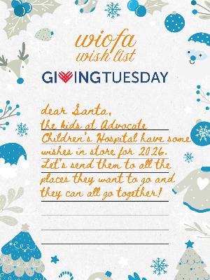Our 2025 giving fund goes toward creating patient support programs for kids undergoing treatment for cancer and blood disorders at Advocate Children’s Hospital. This Giving Tuesday, we’re asking you to help us kick off our WIOFA Wishlist holiday season fundraiser for our teen support group for hematology and oncology patients at Advocate Children’s Hospital. A support group that brings comfort, connection, and a little sparkle to patients who need it most.
